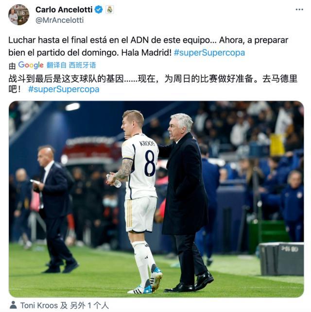 克罗斯不应该不明白,去年他曾旗帜鲜明地表示,自己不会为了钱去沙特踢球,并讽刺正在当打之年的球员去沙特效力是“耻辱”。不管怎样,安帅还是非常会做人,他在赛后发布的社媒状态中,特意配了一张他和克罗斯的照片,安抚弟子受伤的心,尽管他配发的文字似乎和克罗斯并没有特别直接的联系。